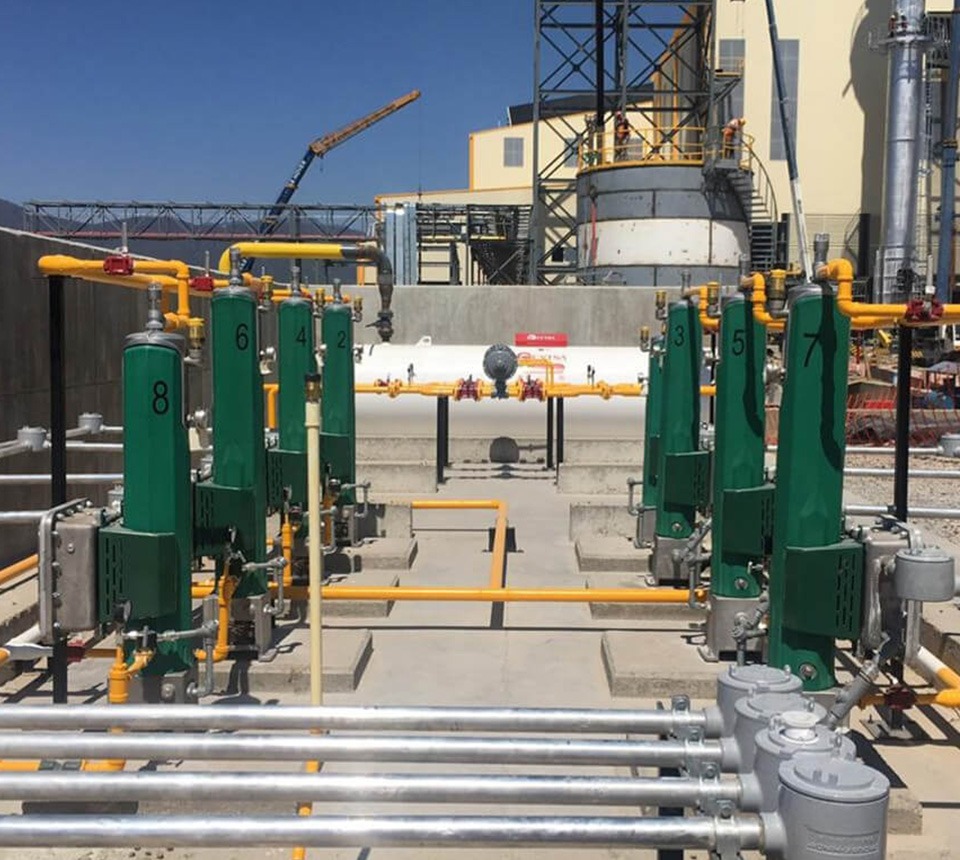 Válvulas sísmicas, reguladores de alta y baja presión, medidores de flujo, manómetros, válvulas de aguja, válvulas worcester, filtros, vaporizadores, ánodos de sacrificio, tanques de almacenamiento de gas, etc